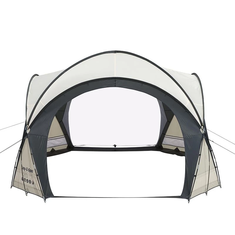 Avec une hauteur de 2,55 mètres, vous aurez la sensation de vous prélasser au milieu d’un véritable cocon de confort. Il vous assure de profiter un maximum de votre spa gonflable tout au long de l’été sans craindre la météo. Le dôme de protection Bestway occupe un espace au sol de 3,90 par 3,90m et pourra accueillir un spa de diamètre maximal de 3,66m.