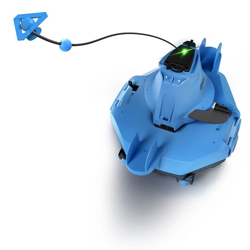 Immergez le robot et un capteur déclenche son démarrage pour un nettoyage complet de votre piscine. La présence d’un capteur d’eau permet d’éviter une surchauffe en coupant automatiquement le robot une fois qu’il est sorti de l’eau. Sa batterie lithium-ion de 2000 mAh lui assure une autonomie de fonctionnement jusqu’à 45 minutes après charge complète. Cette charge doit être réalisée une fois le robot sec et prend 5 à 6 heures.