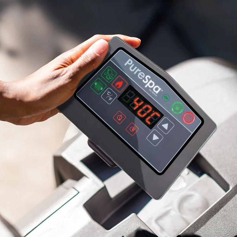 Intex améliore l’ensemble de la gamme Pure spa pour plus de performances. Le spa Baltik dispose d’un nouveau bloc technique plus moderne, compact et design développé pour être performant, pratique et silencieux. Doté d’une tablette tactile amovible et étanche, un support intelligemment disposé sur le bord de la structure du spa vous permettra de la fixer et la garder à disposition pour conserver un accès facile aux fonctions essentielles sans quitter votre spa. La tablette tactile du modèle Baltik LED luxe 4 places commande l’ensemble des fonctions du spas, à savoir :