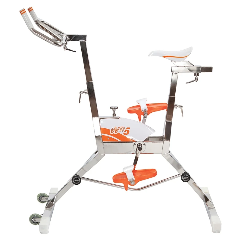 Le vélo aquatique WR5 est la version la plus sportive de sa catégorie. Conçu en inox 316L de qualité marine, il est avec tous types de traitement d’eau et tous types de revêtement. Cet aquabike se caractérise par une performance inégalée grâce à son système de résistance mécanique ajustable : Spinning Pro System. Il possède une grande modularité de réglage pour s’adapter à tous gabarits. Le double réglage hauteur/ largeur de la selle et du guidon assure une bonne assise, sans risque musculaire. Pensé pour vous simplifier la vie, il offre un double marquage de la tige de selle et du guidon pour repérer le réglage qui vous correspond le mieux à chaque utilisation.